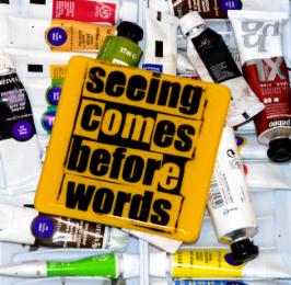 Glass tile / coaster kiln fired with quote "seeing comes before words" - John Berger