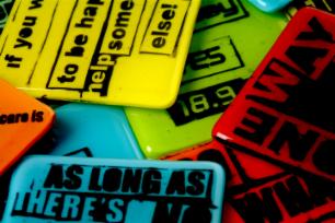 TextTiles is an antidote to the worn-out words that dominate our world. TextTiles are quality hand painted kiln fused art glass tiles.