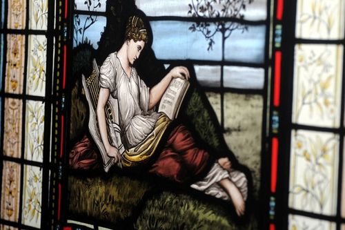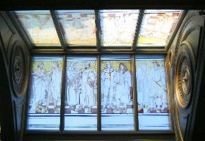 The gallery stained glass windows depict historical figures including Scopas, Praxiteles, Ghiberti, Donatello, Veronese, Titian, Sir Christopher Wren and Inigo Jones. The windows are approximately 2.5m in length and are probably amongst the largest single panels of stained glass windows in Scotland.(?). The gallery has been converted into the main living area for a new flat. The roof of the gallery is in three sections of 8 windows each.