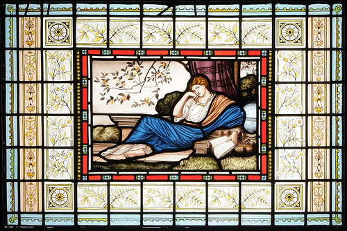 Stained glass originally made by Glasgow stained glass firm W & J.J Kier c1870. Established by David Kier in 1802-64, known primarily for the installation of the controversial Munich stained glass windows by the Royal Bavarian Manufactury for Glasgow Cathedral in 1856.