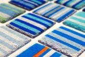 Striped tiles or plain coloured tiles. All glass tiles are available in standard sizes 100mm x 100mm. (End strips, irregular shapes and other sizes are made to order).