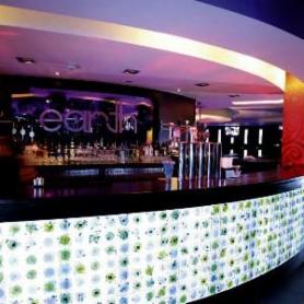 Bespoke fused glass tiles bar front. Earth nightclub, Drogheda, Ireland. Confetti design.