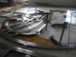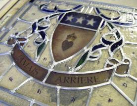 A Douglas coat of arms window being built in the studio. The panel is leaded up and about to be soldered. "Jamais Arriere", Never Behind.