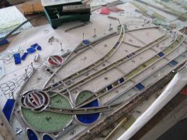 Left. Stained glass cartoon (Template drawing of the window) with glass being cut.